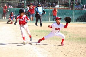 EL primera base de la Liga Olmeca, Nicolás Díaz, pone fuera a su rival de la Liga Kino.