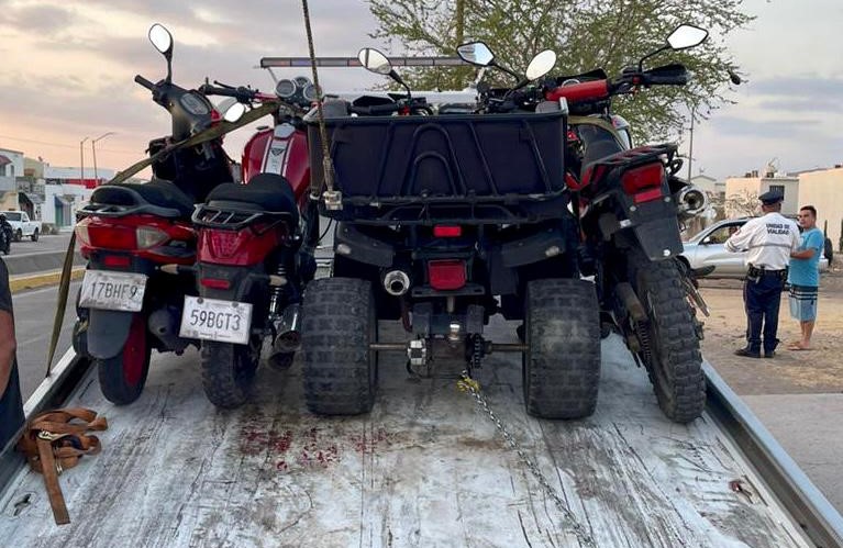 Culiacán, Sinaloa.- En atención a reportes ciudadanos, personal de la Policía Municipal Unidades Preventiva y de Vialidad y Tránsito, realizó un operativo de seguridad en el sector de La Conquista, específicamente en el fraccionamiento Cedros, el cual tuvo como resultado, el aseguramiento de 13 motocicletas y una camioneta por faltas al reglamento de Tránsito, así como también fueron detenidas 5 personas por faltas al Bando de Policía y Gobierno.