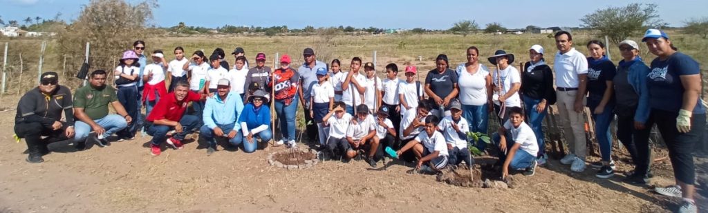 La Reforma, Angostura a 28 de junio del 2023.- La asociación civil SUCEDE, en colaboración con instituciones educativas y autoridades municipales, sembró especies regionales en el acceso a la sindicatura de La Reforma, como parte de las actividades para celebrar el Día Mundial del Árbol.