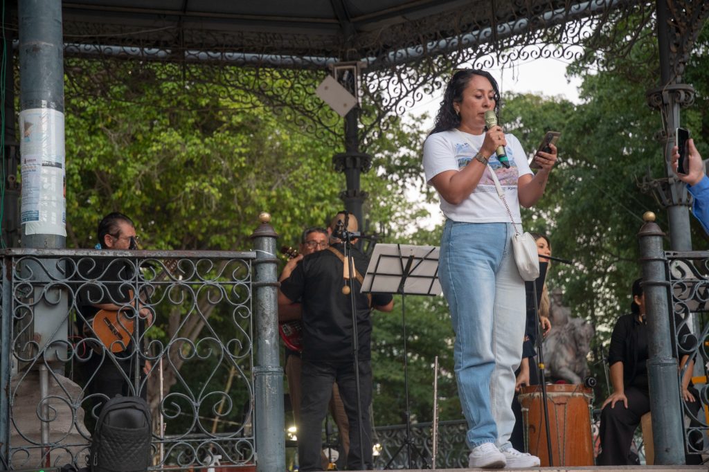 Durante la actividad, el público también subió al kiosco para compartir lecturas de reconocidos autores, entre aplausos y un ambiente de comunidad artística.