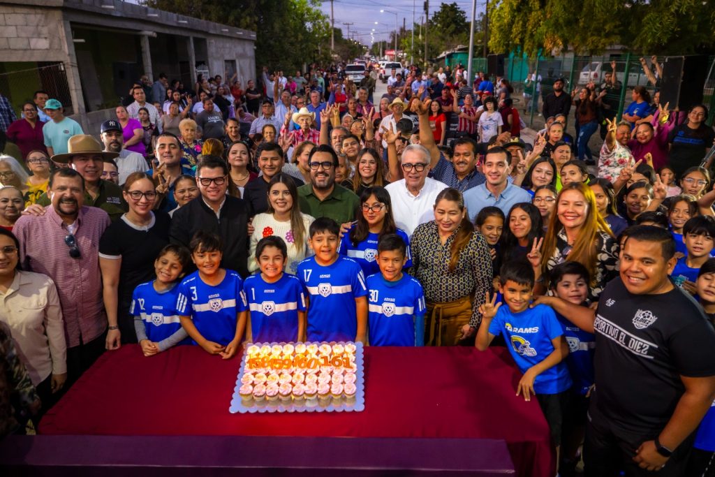*El mandatario estatal inauguró la pavimentación de cuatro calles y una cancha de futbol con pasto sintético, todo con una inversión de 17.6 millones de pesos