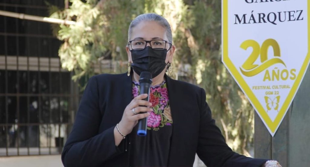 Mocorito, Sinaloa; a 28 de febrero de 2022.- Al considerar al Festival Cultural “Gabriel García Márquez”, como un referente a nivel nacional por su fomento a la lectura, la secretaria de Educación Pública y Cultura, Graciela Domínguez Nava, aseguró que a Sinaloa “le urgen muchos Recovecos como el de Mocorito, donde por medio de los libros y la lectura florezca el arte, el humanismo, la alegría, la paz, la fraternidad y la solidaridad, esto en el marco del Vigésimo Aniversario de la fundación del Club de lectura “La Hojarasca”, que se organiza con estudiantes del CBTA 133.