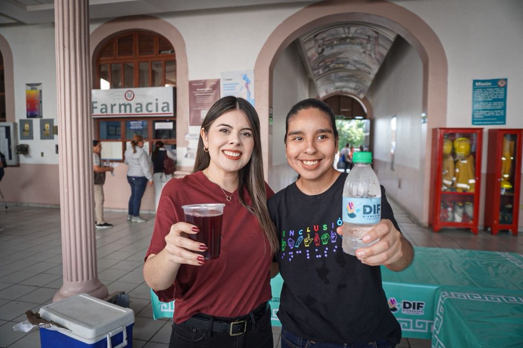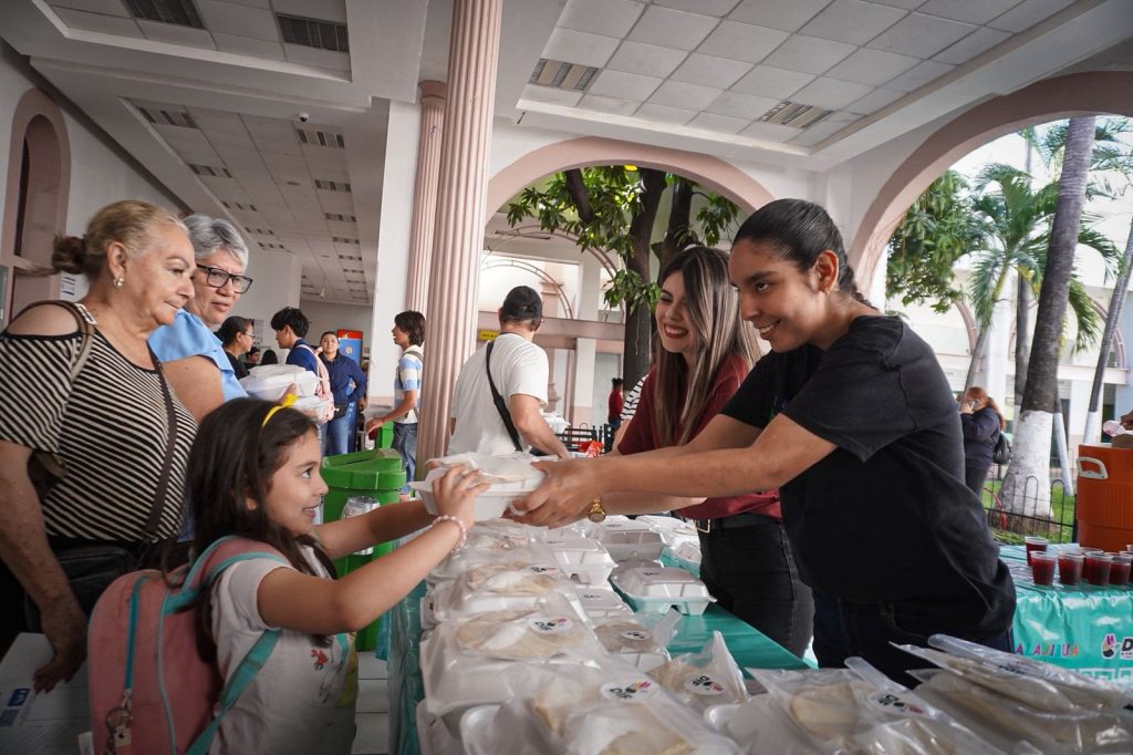 Como parte de esta acción de cercanía, la presidenta del organismo acudió personalmente al lugar, acompañada de Michelle Álvarez, joven integrante de la asociación EmpleaM con Causa, para entregar de manera directa los platillos y compartir un mensaje de esperanza con cada beneficiario.