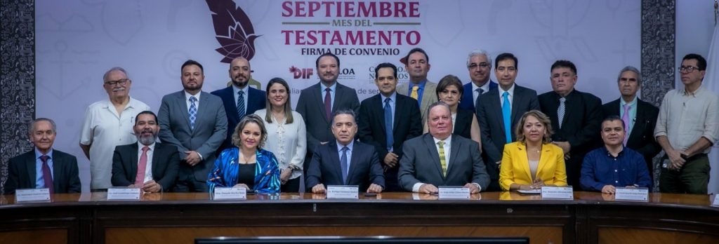 Culiacán, Sinaloa, a 1 de septiembre del 2023.- Con el propósito de contribuir a la armonía familiar y evitar futuros conflictos legales derivado de la falta de un testamento, la presidenta del Sistema DIF Sinaloa, Eneyda Rocha Ruiz, suscribió con el presidente del Consejo de Notarios del Estado, Jorge Julián Chávez Murillo, el convenio para la campaña “Septiembre, Mes del Testamento”, mediante la cual todos los notarios de Sinaloa ofrecerán sus servicios de elaboración de este documento con un 50 por ciento de descuento, pues de un costo normal de dos mil pesos para el público en general, con la presentación de una carta del DIF los solicitantes únicamente pagarán mil pesos.