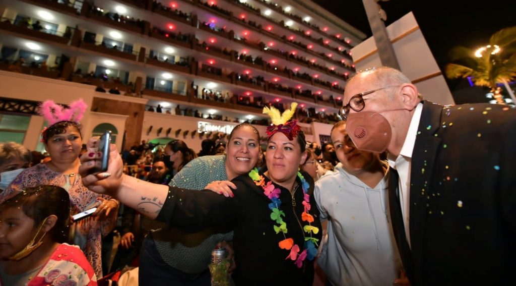 El Alcalde Luis Guillermo Benitez Torres encabezó el recorrido de las 31 alegorías rodantes, y a su paso recibió la ovación de miles de personas que asistieron al legendario desfile, por el valor de defender la realización en esta edición de la máxima fiesta de los mazatlecos.