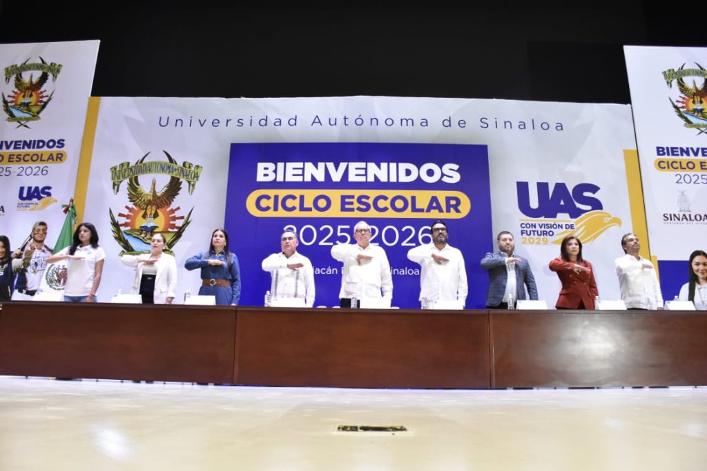 La Universidad Autónoma de Sinaloa (UAS) llevó a cabo la Ceremonia de Bienvenida del Ciclo Escolar 2025-2026 que fue presidida por el Rector, doctor Jesús Madueña Molina y fue inaugurado por el Gobernador del Estado, doctor Rubén Rocha Moya, quien refrendó su respaldo a la institución y expresó un llamado a las autoridades federales para que apoyen a esta Casa de Estudios en su problemática financiera.