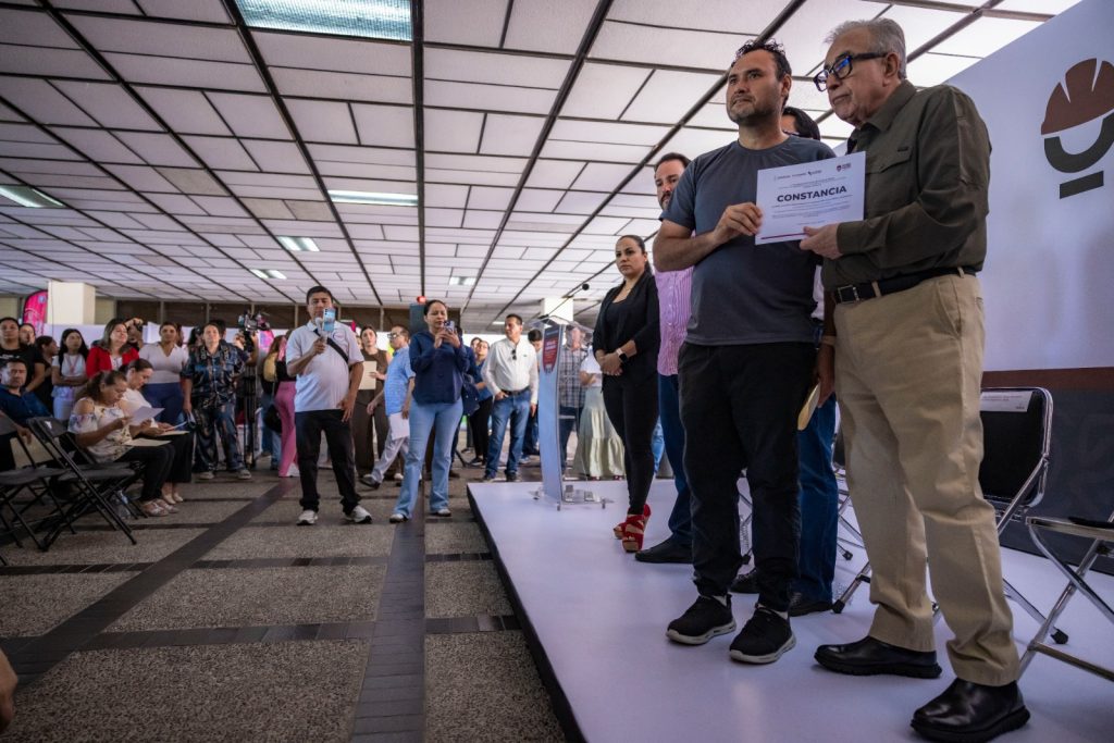 “Este año definimos que este importante sector del autoempleo, en los oficios, era importante tomarlo en cuenta y por eso trabajamos de la mano con el ICATSIN, donde se capacitó gratuitamente a los 150 beneficiarios del día de hoy en los diferentes oficios, y no nada más eso, van a recibir equipos por un valor de 1.2 millones de pesos, alrededor de 740 equipos”, explicó.