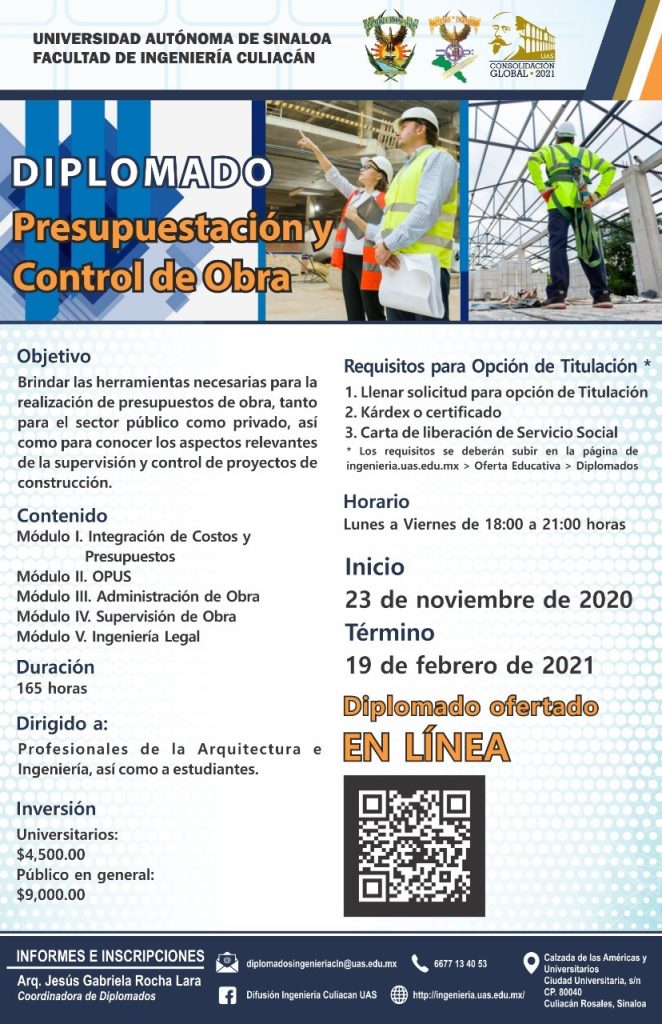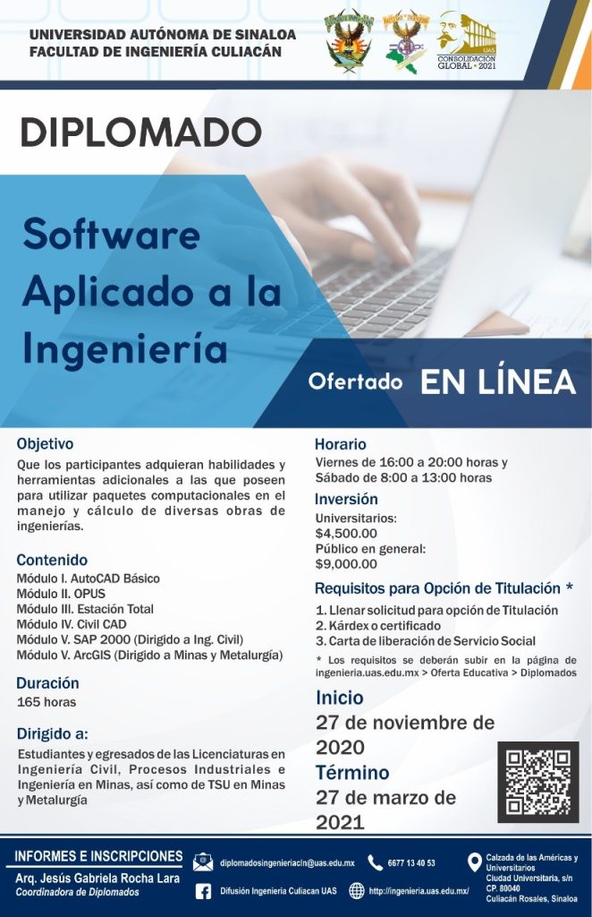 Los interesados en participar en estos diplomados pueden solicitar mayor información por medio de la página ingenieria.uas.edu.mx en el apartado de Diplomados, o bien al correo electrónico diplomadosingenieriacln@uas.edu.mx.