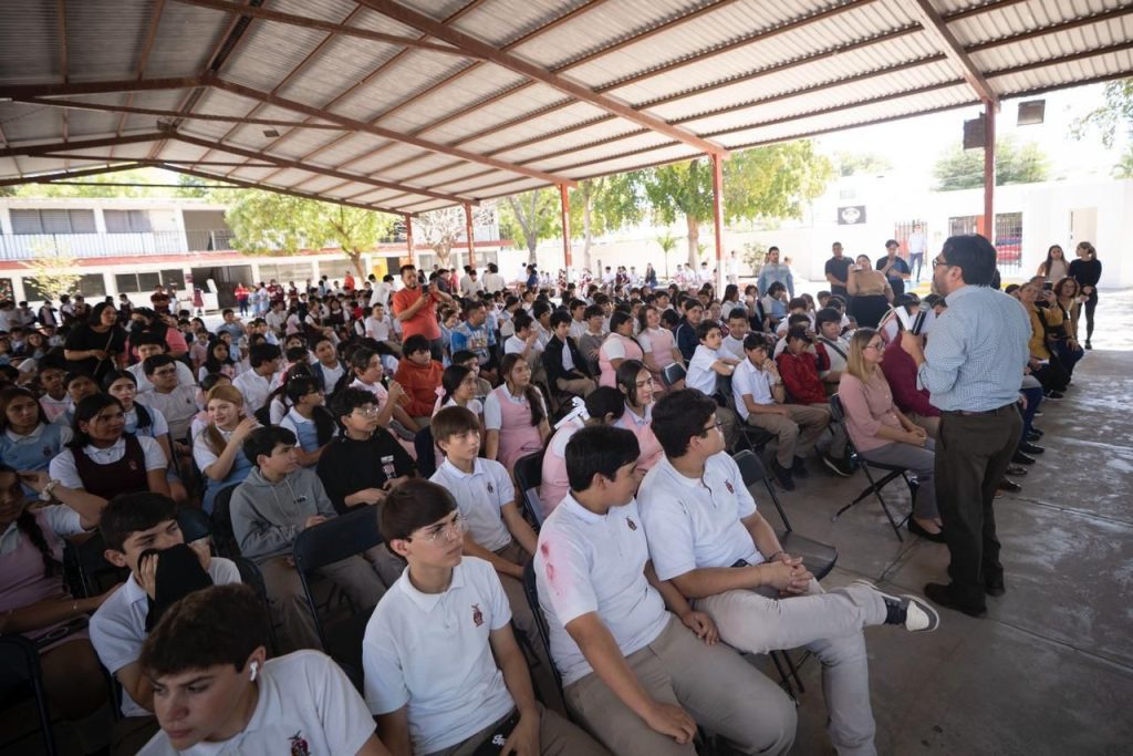 Al dirigir su mensaje a las y los estudiantes del plantel, Gámez Mendívil compartió que es prioridad de su gobierno conocer las condiciones en las que estudian, para atender sus necesidades y mejorar su desarrollo académico.