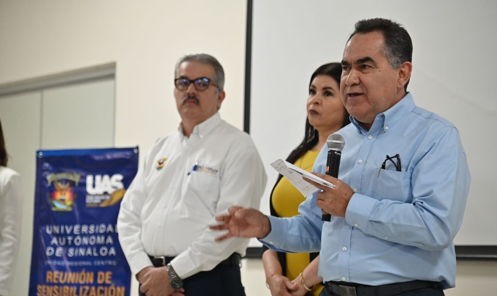 Culiacán, Sinaloa, a 25 de abril de 20223.-El Rector de la Universidad Autónoma de Sinaloa (UAS), doctor Jesús Madueña Molina, puso en marcha en la Unidad Regional Centro (URC) el Taller de Sensibilización para la realización de los Foros Internos 2023 de la Reforma Académica y Administrativa que lleve a implementar el Nuevo Modelo Educativo UAS 2022.