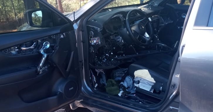Se informa también, que uno de los 3 automóviles en donde viajaban los afectados, se encuentra semi desmantelado, y en su interior se perciben modificaciones sospechosas, al parecer los llamados “clavos”.