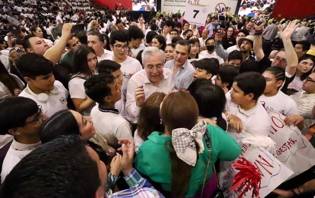 Culiacán, Sinaloa, a 17 de junio de 2023.- Con el Polideportivo Juan S. Millán a su cupo máximo por la presencia de 2000 jóvenes estudiantes de múltiples instituciones de educación pública, este sábado el Gobernador Rubén Rocha Moya dio inicio en Sinaloa a la Jornada Nacional de la Estrategia en el Aula «Si te drogas te dañas», cuyo objetivo es generar un espacio de convivencia entre alumnos de nivel secundaria y media superior, autoridades gubernamentales y educativas para crear consciencia del consumo de drogas y los daños que ocasionan, así como fomentar el desarrollo de habilidades de autocuidado, y toma de decisiones asertivas, para lograr estilos de vida saludables.