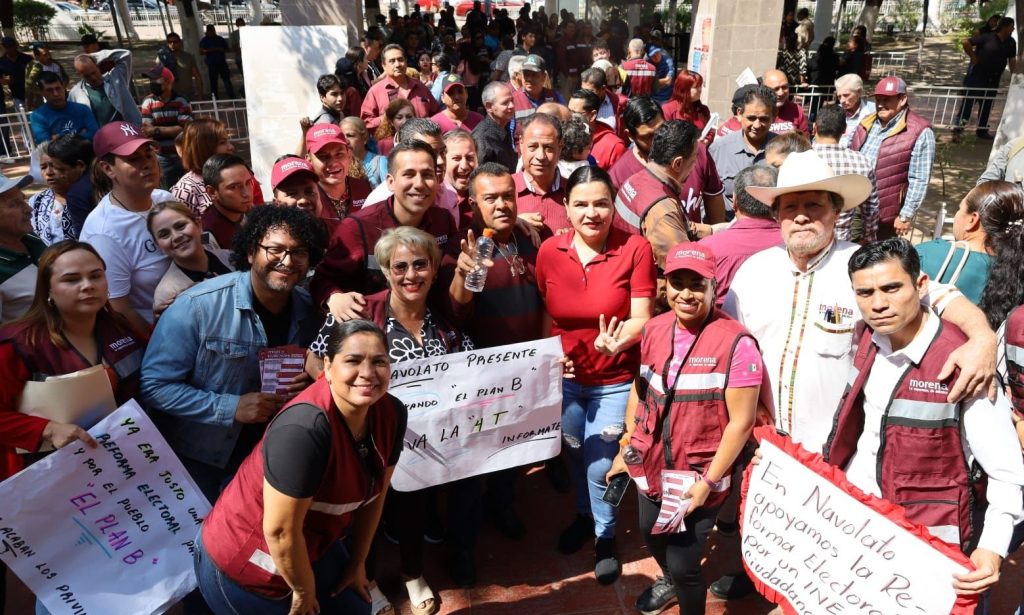 En su intervención la Presidenta Municipal de Navolato señaló que este domingo salieron a ejercer su derecho a la libertad de expresión, para manifestar el apoyo al Plan B de la Reforma Electoral, la cual fortalece la democracia y se busca que el Instituto Nacional Electoral sea más ciudadano y austero, quitando privilegios a quienes siempre se han servido del pueblo.