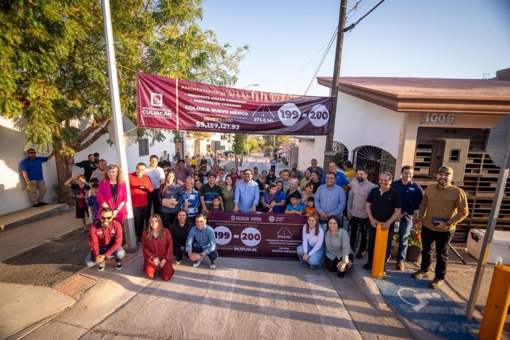 Culiacán, Sinaloa., a 20 de marzo de 2026.– Vecinos de la colonia Nuevo México cuentan ya con nuevas vialidades tras la entrega de la pavimentación de las calles 199 y 200, ubicadas en los tramos Presidente Ignacio Comonfort y Participación Ciudadana, rompiendo un ayuno de 50 años sin nuevas obras viales en el sector.