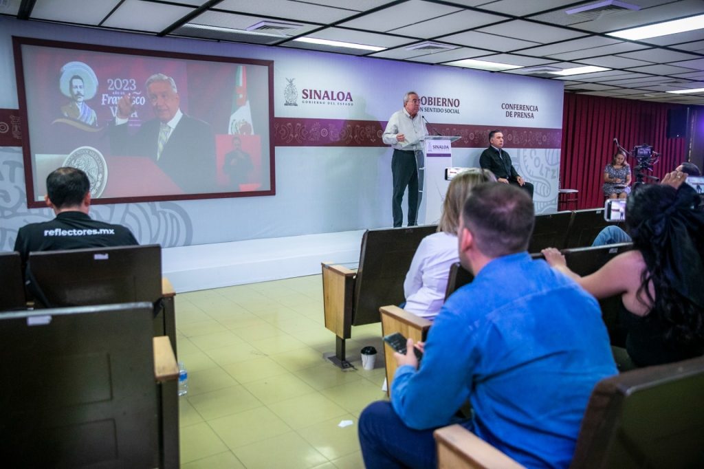 Durante su Conferencia Semanera, el gobernador Rocha proyectó un fragmento de la conferencia mañanera que a su vez ofreció este mismo lunes el presidente de México, donde reiteró que SEGALMEX comprará un millón y medio de toneladas de maíz de Sinaloa a pequeños y medianos productores de hasta 15 hectáreas, contrario a lo que ocurría en el pasado, donde se entregaba un subsidio a los grandes productores, pues ahora se asegura primero la comercialización de los pequeños agricultores.