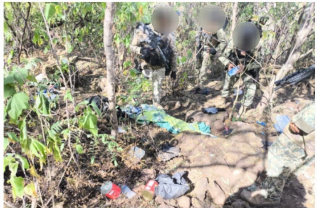 Durante un recorrido de reconocimiento en los poblados La Palma y La Tuna, en Badiraguato, los elementos interinstitucionales localizaron y desmantelaron tres campamentos utilizados por grupos delictivos.