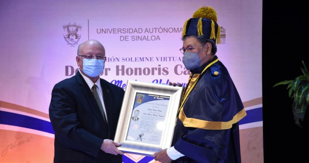 El Rector calificó este evento de especial por lo que significa para la Universidad reconocer a un excelente sinaloense y porque, derivado de la pandemia, es la primera vez que se otorga en una ceremonia virtual.