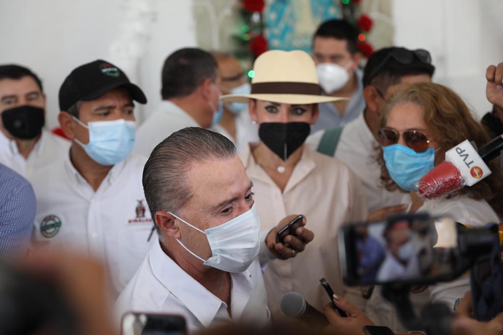 A su arribo, el gobernador del estado fue entrevistado por los medios de comunicación, e informó que su gobierno destinará recursos propios para estos programas a los que se refirió, como medida compensatoria por la eliminación de varios programas de apoyo que antes entregaba el Gobierno de la República, de los cuales sólo quedó instituido el Bienpesca.