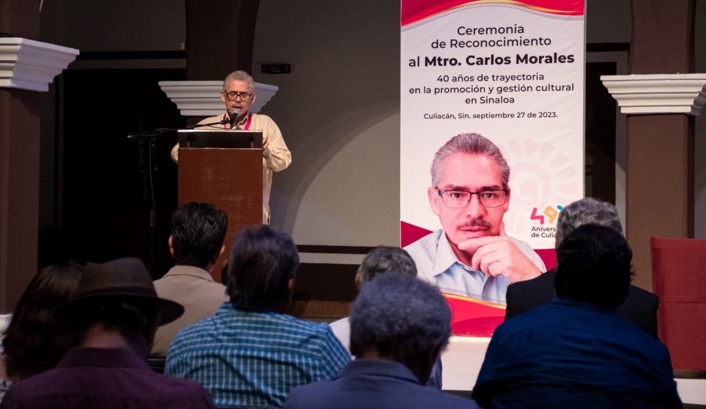 Culiacán, Sin., a 27 de setiembre de 2023.– En el marco de los festejos del 492 Aniversario de Culiacán, se ha llevado a cabo un especial reconocimiento a la destacada trayectoria y labor de Carlos Morales, promotor y gestor cultural sinaloense.