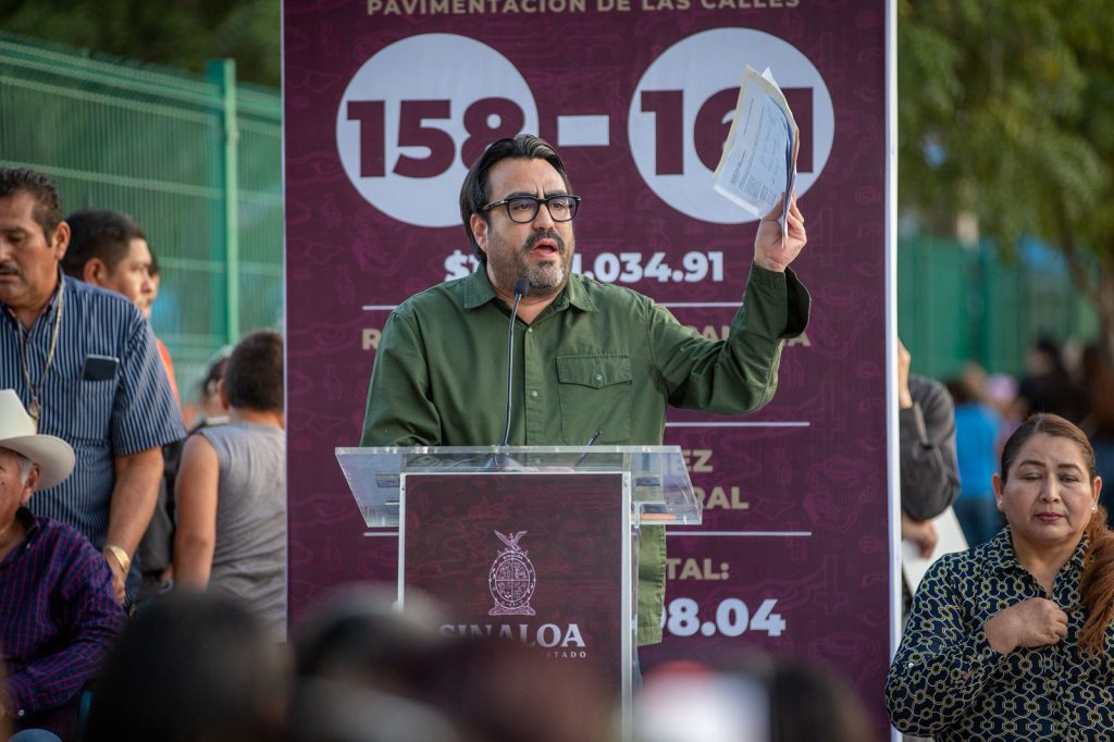 Culiacán, Sinaloa; a 20 de enero de 2026.- Al entregar junto con el gobernador Rubén Rocha Moya obras de pavimentación y una cancha deportiva en El Diez, con una inversión cercana a los 18 millones de pesos, el alcalde Juan de Dios Gámez afirmó que el pueblo debe saber qué se está haciendo para su bienestar y destacó que hoy a diferencia del pasado es justamente el pueblo el que plantea la ruta de qué hacer en cada colonia y comunidad.