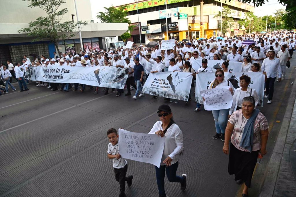 Durante el recorrido que avanzó por más de dos kilómetros por una de las avenidas principales de la capital sinaloense para concluir en las inmediaciones de la Catedral, los participantes en esta movilización con pancartas exigían justicia por los desaparecidos, reclamaban un alto a la violencia en contra de las mujeres, demandaban un Sinaloa libre de violencia, un Sinaloa en paz.
