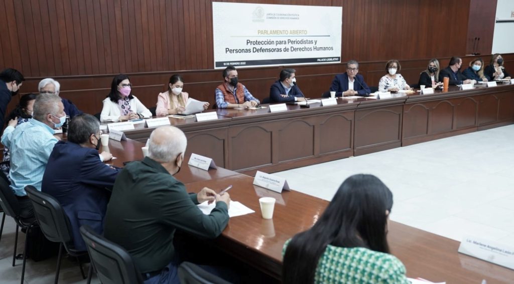 El presidente de la Junta de Coordinación Política encabezó el Parlamento Abierto que tuvo lugar este viernes con el tema de “Protección para periodistas y personas defensoras de derechos humanos”, que tuvo lugar en el salón Constituyentes de 1917, con el objeto de elaborar una ley en ese sentido.