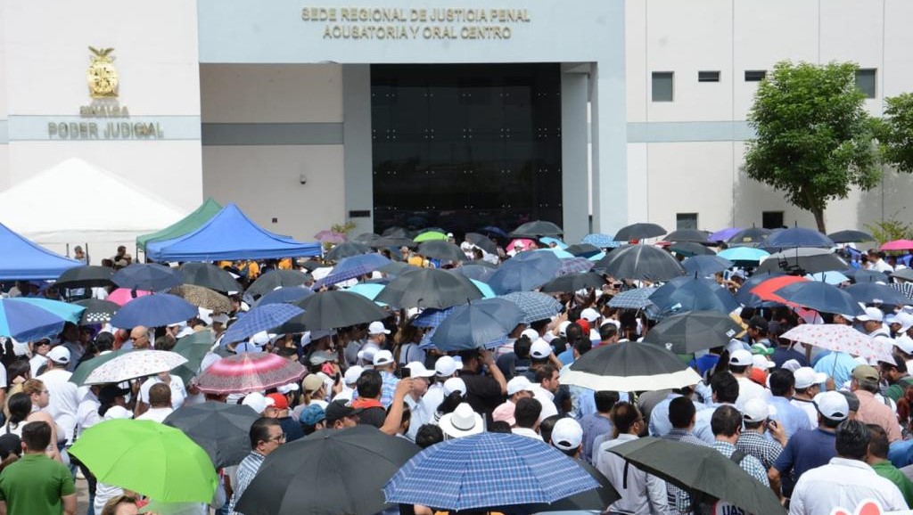 Con el objetivo de mostrar solidaridad con el Rector de la Universidad Autónoma de Sinaloa (UAS) durante su primera Audiencia ante el Juez, universitarios que a temprana hora se dieron cita en las instalaciones de la Sede Regional de Justicia Penal Acusatoria y Oral Zona Centro, mediante palabras de aliento y unidos, demostraron su apoyo y respaldo al doctor Jesús Madueña Molina.