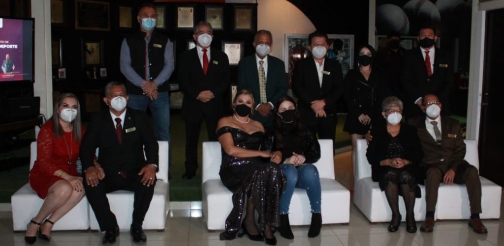 El presidente municipal, Jesús Estrada Ferreiro; Carlos Octavio Lara Cebreros, titular del IMDEC; David Velázquez Robles, presidente del Comité Elector del Salón de La Fama, además del secretario Rigoberto Quintero Beltrán y Salvador Hernández Garay, administrador del Salón de la Fama, encabezaron el acto con el cual se llega al final de los trabajos de la entronización 2020.